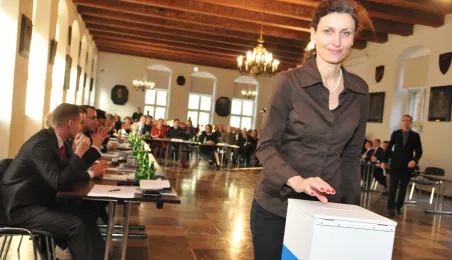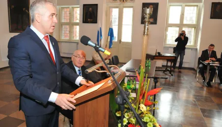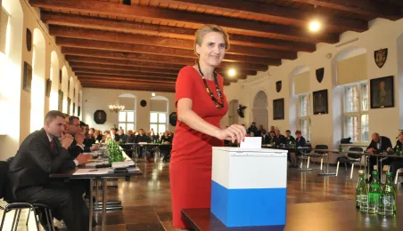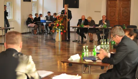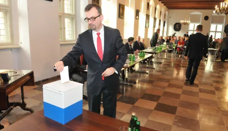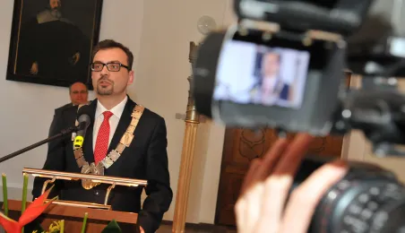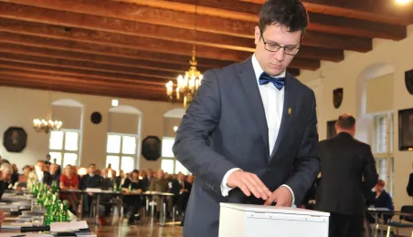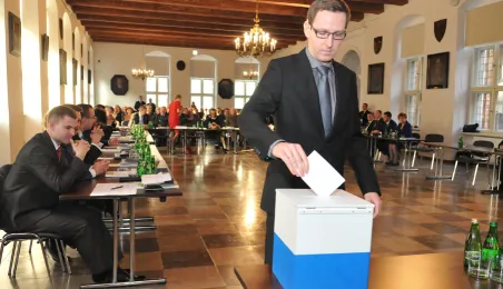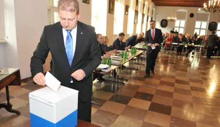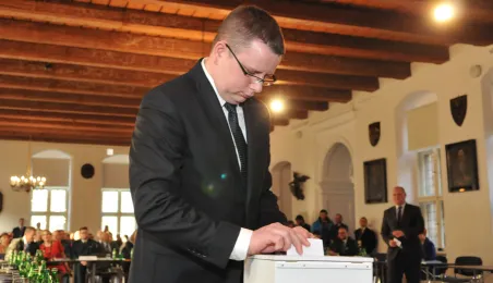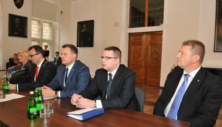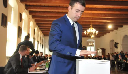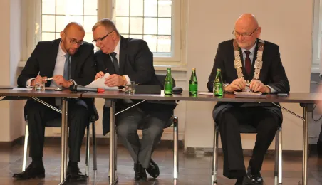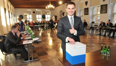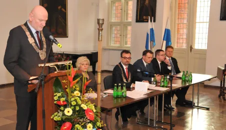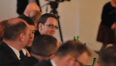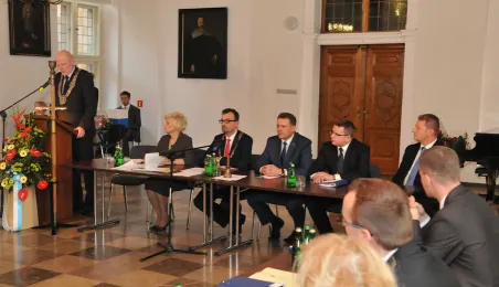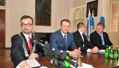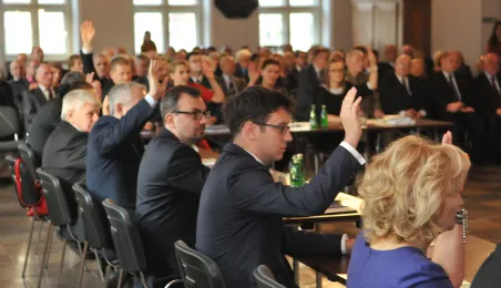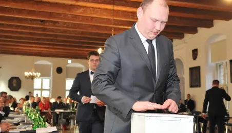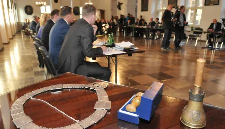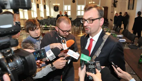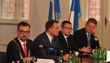28 listopada 2014 r. w Ratuszu Staromiejskim po raz pierwszy zebrała się Rada Miasta Torunia VII kadencji. Radni wybrali przewodniczącego, którym został Marcin Czyżniewski. Ustalili także liczbę wiceprzewodniczących i powierzyli tę funkcję: Łukaszowi Walkuszowi, Maciejowi Cichowiczowi oraz Michałowi Jakubaszkowi. Fot. Łukasz Klimkiewicz