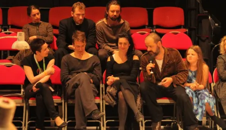 Małgorzata Warsicka, reżyser spektaklu „Jakobi i Leidental” Teatru im. Ludwika Solskiego w Tarnowie oraz aktorzy Konrad Beta za rolę Benjamina w spektaklu „Męczennicy” Teatru Współczesnego w Szczecinie i Teatru Dramatycznego w Wałbrzychu oraz Karolina Kamińska za rolę Jennifer w spektaklu „W mrocznym, mrocznym domu” Teatru im. Juliusza Słowackiego w Krakowie zdobyli laury 3. Festiwalu Debiutantów „Pierwszy Kontakt”. 23-29 maja 2015 r. w Teatrze im. Wilama Horzycy zaprezentowano trzynaście spektakli. Były to debiuty dla dziesięciu aktorów i sześciu reżyserów. Nagrodę Specjalną za Debiut Teatralny jury przyznało zespołowi muzycznemu Chłopcy kontra Basia, grającemu na żywo w spektaklu Morfina Teatru Śląskiego w Katowicach. Fot. Magdalena Kujawa