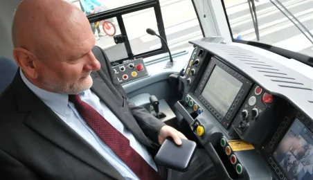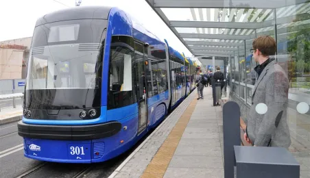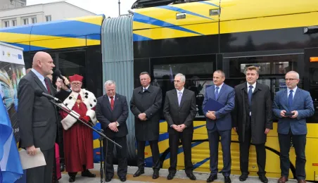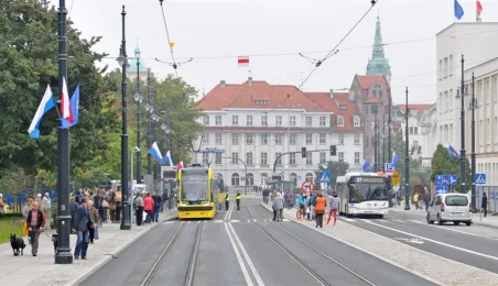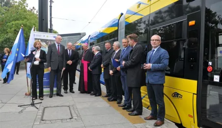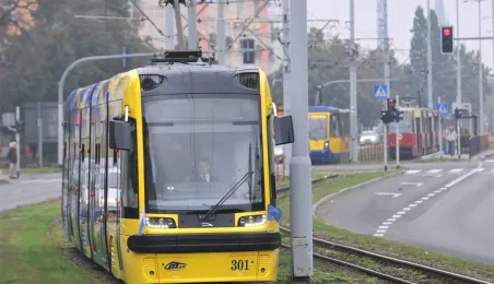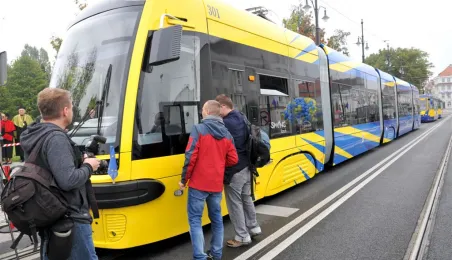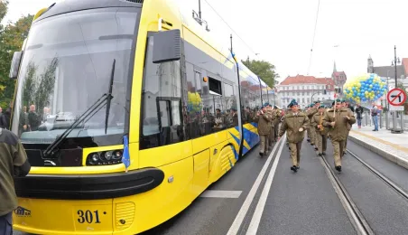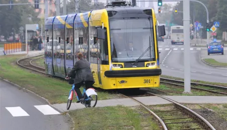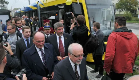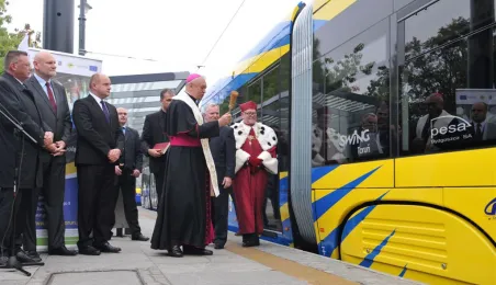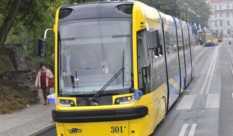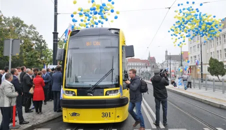 Do Torunia trafił pierwszy swing – nowy, tramwaj wyprodukowany dla naszego miasta przez bydgoską fabrykę PESA. To pierwszy z dwunastu nowoczesnych, niskopodłogowych tramwajów, które miasto kupiło w ramach unijnego projektu BiT City. Do końca przyszłego roku po Toruniu będzie jeździć 6 wagonów 3-członowych o długości 19 m, mieszczących do 123 osób i tyle samo 5-członowych o długości 30 m, w których zmieści się nawet 207 osób. 1 października 2014 r. nowy tramwaj przejechał po raz pierwszy linią ze starówki na Bielany. Fot. Małgorzata Litwin