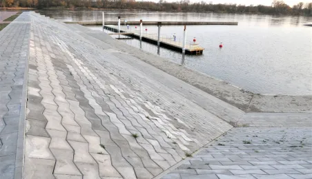 Inwestycje na przystani przy ul. ks. Jerzego Popiełuszki w Toruniu trwają już od 2011 r. W pierwszej kolejności została wyremontowana część „portowa”, gdzie powstała nowa pochylnia transportowa i punkty cumowania dla kajaków. Obecnie są zaś montowane drewniane pomosty. Prace wykonało Przedsiębiorstwo Budownictwa Hydrotechnicznego „HYDRO-EKO” z Bydgoszczy.