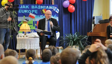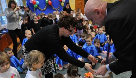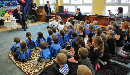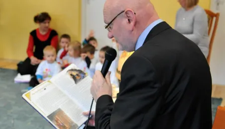 3 lutego 2015 r. prezydent Torunia odwiedził Przedszkole Miejskie nr 10, które realizuje program edukacyjny umożliwiający dzieciom poznanie krajów Unii Europejskiej poprzez czytanie pochodzących z nich bajek. Michał Zaleski przeczytał dzieciom bajkę z Estonii "Dlaczego woda w morzu jest słona?". Fot. Małgorzata Litwin