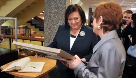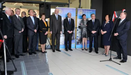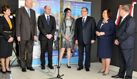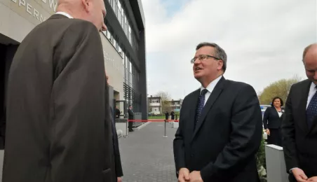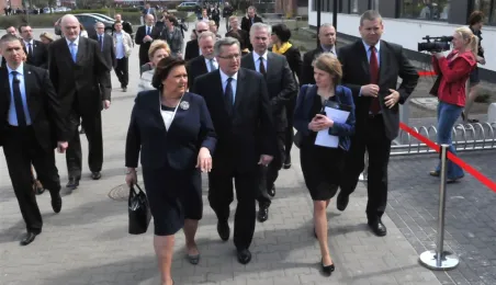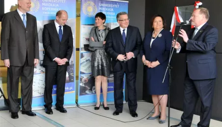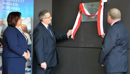 Prezydent RP Bronisław Komorowski wraz z małżonką na otwarciu w Toruniu Interdyscyplinarnego Centrum Nowoczesnych Technologii UMK, 25 kwietnia 2013 r. Fot. Małgorzata Litwin