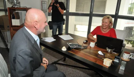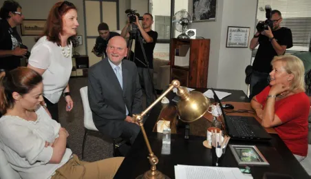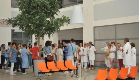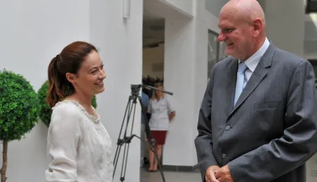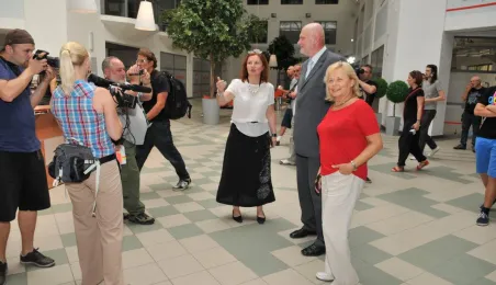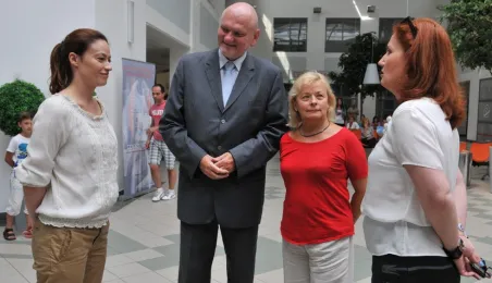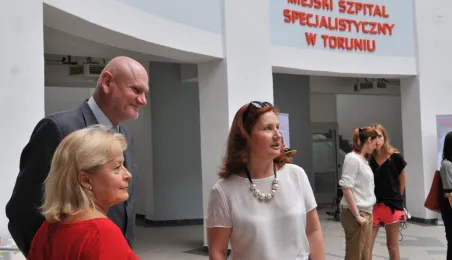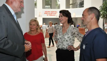 Od 11 do 26 lipca 2013 r. w Toruniu trwają zdjęcia do trzeciej części serialu "Lekarze", opowiadającego o losach młodej lekarki Alicji Szymańskiej (Magdalena Różczka) i jej przyjaciół ze Szpitala Miejskiego Copernicus w Toruniu. Produkcję, w której pokazywane są piekne plenery Torunia, wspiera miasto. 25 lipca na planie filmowym, zlokalizowanym w Centrum Targowym Park, gościł prezydent Torunia Michał Zaleski. Towarzyszyła mu żona Krystyna, która - tak jak serialowa Elżbieta Bosak (Danuta Stenka) - jest dyrektorem szpitala miejskiego w Toruniu. Fot. Małgorzata Litwin