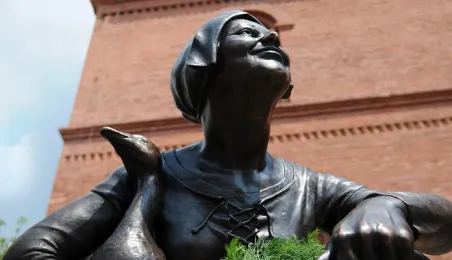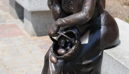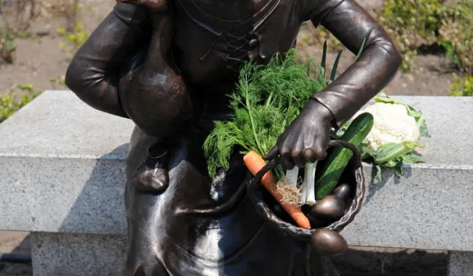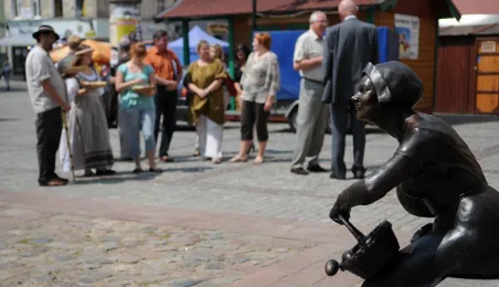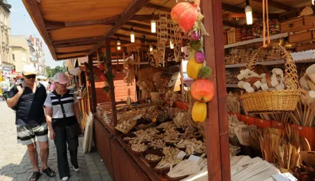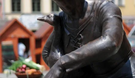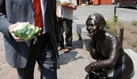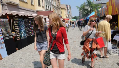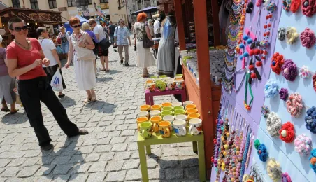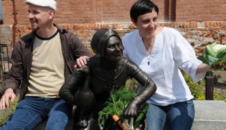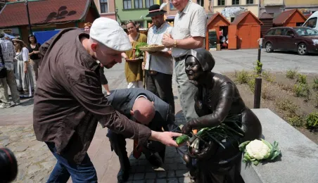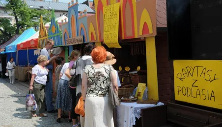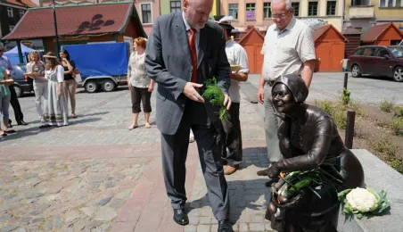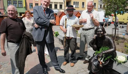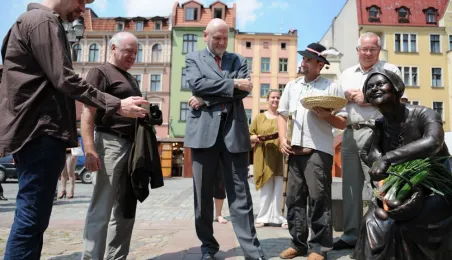 Przekupka z wagą na Rynku Nowomiejskim w Toruniu. Toruń, 16 czerwca 2011 r. Fot. Małgorzata Litwin.