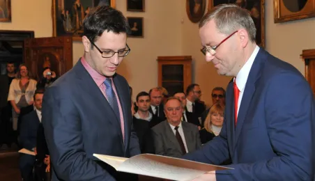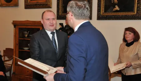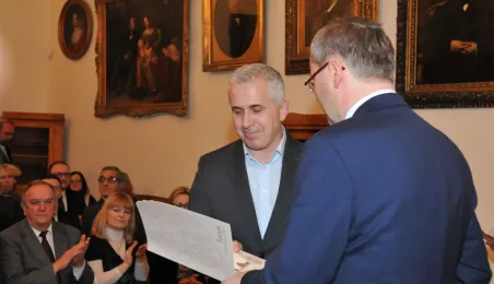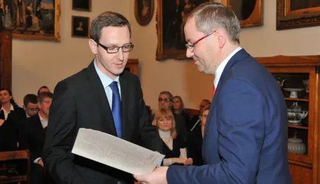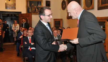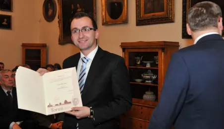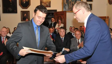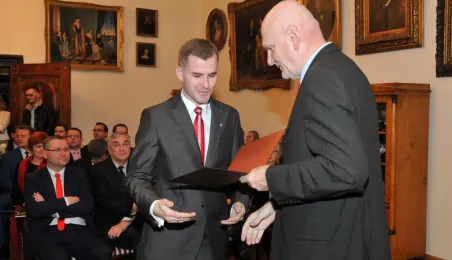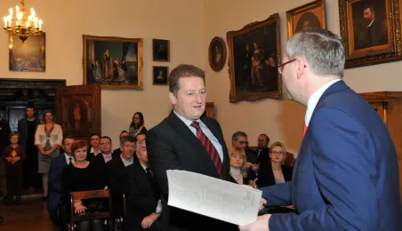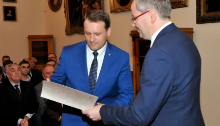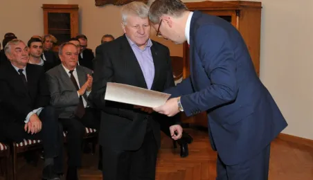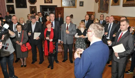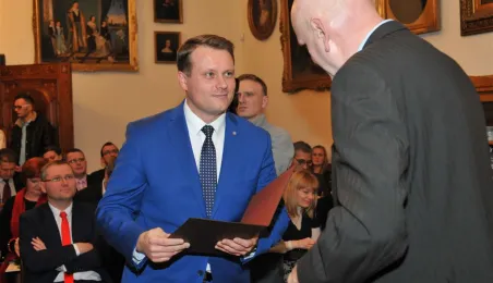 25 nowych toruńskich radnych, wybranych na kadencję 2014-2018, odebrało 24 listopada zaświadczenia o uzyskaniu mandatu w Radzie Miasta Torunia. Przewodniczący Miejskiej Komisji Wyborczej Marek Paczkowski wręczył też zaświadczenie Michałowi Zaleskiemu, który po raz czwarty został wybrany Prezydentem Miasta Torunia. Fot. Małgorzata Litwin