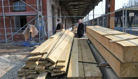 Rozpoczęła się rewitalizacja obiektów Dworca PKP Toruń Główny, przejętych przez toruński samorząd w 2013 r. Jako pierwszy zostanie zmodernizowany budynek dawnej poczty, jako ostatni - budynek główny dworca. 3 kwietnia 2014 r. na placu budowy odbyła się konferencja prasowa z udziałem przedstawicieli miasta i wykonawcy - firmy Fijałkowski. Fot. Małgorzata Litwin