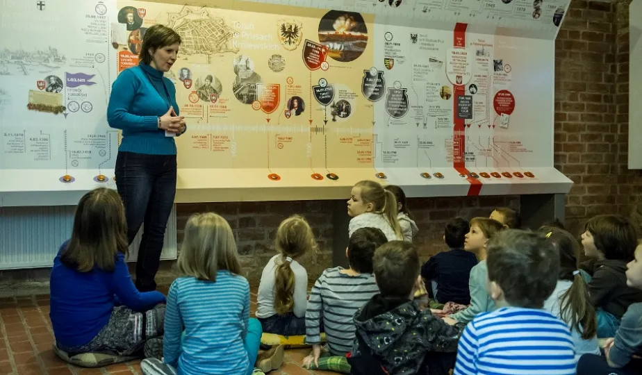W piwnicach Muzeum Historii Torunia urządzono trzy pomieszczenia edukacyjne. Sale są uzupełnieniem wystawy stałej „Toruń i jego historia”.