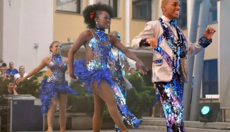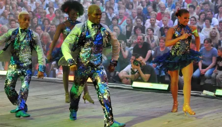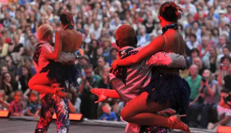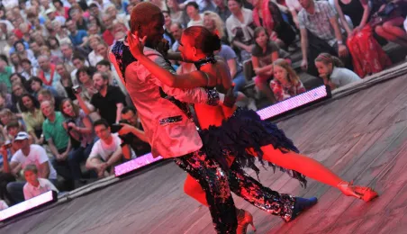 Salsa w wykonaniu pięciokrotnych mistrzów świata - kolumbijskiej grupy Swing Latino. Pokaz zorganizowany 9 czerwca 2013 r. przez Toruńską Agendę Kulturalna, dzięki współpracy Urzędu Miasta Torunia z Ambasada Kolumbii w Polsce. Fot. Małgorzata Litwin