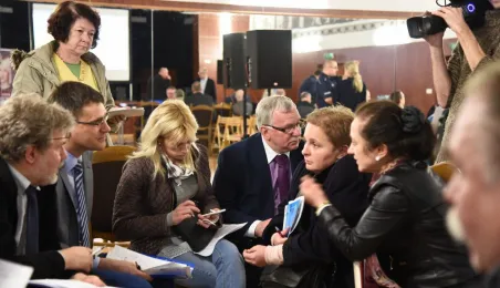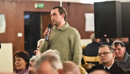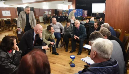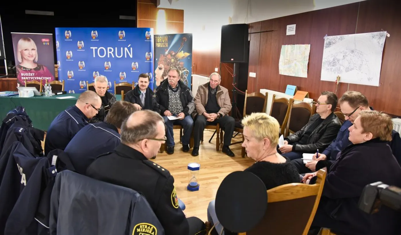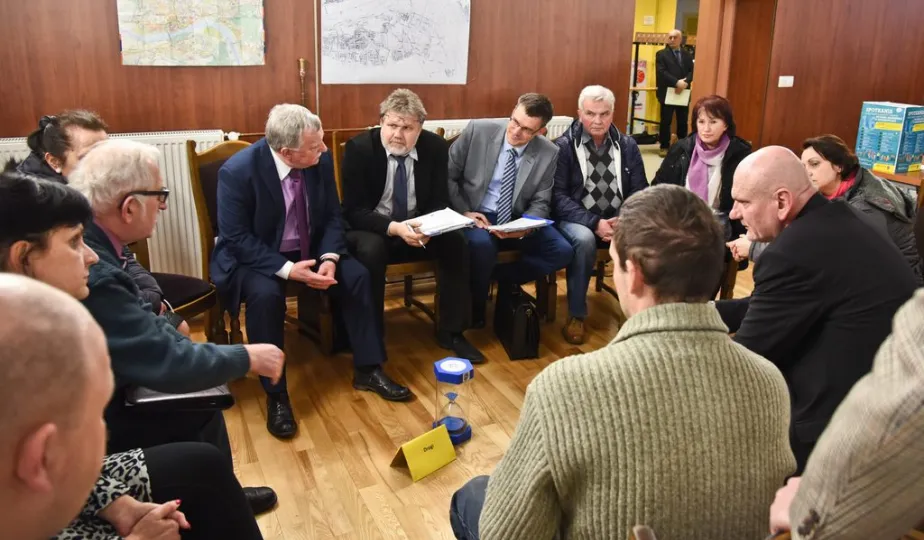 Trwa cykl dyskusji o mieście prezydenta Torunia Michała Zaleskiego z mieszkańcami wszystkich trzynastu okręgów miasta. 22 lutego 2016 r. odbyło się spotkanie na Rudaku. Nowością są w tym roku warsztaty stolikowe przed spotkaniem głównym, na których mieszkańcy mają okazję bezpośrednio porozmawiać z prezydentem o problemach osiedlowych. Fot. Lech Kamiński