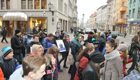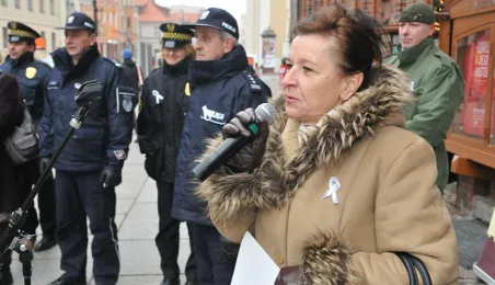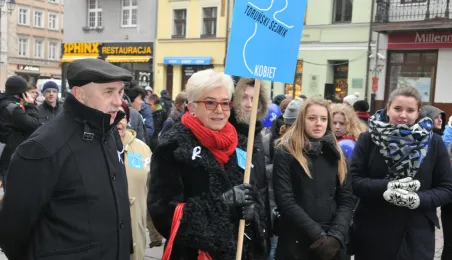 „Kobieta dała ci życie – uszanuj to” - to hasło tegorocznej kampanii „Biała wstążka” mającej na celu walkę z przemocą wobec kobiet. Finałem akcji w Toruniu był przemarsz ulicą Szeroką. Organizatorem toruńskiej kampanii jest miejska instytucja – Miejski Ośrodek Edukacji i Profilaktyki Uzależnień. fot. Łukasz Klimkiewicz