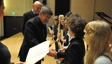 117 uzdolnionych uczniów otrzymało od Prezydenta Miasta Torunia stypendia na rok szkolny 2014/2015. Akty przyznania stypendiów zostały wręczone 20 października 2014 r. w Sali Koncertowej Zespołu Szkół Muzycznych.