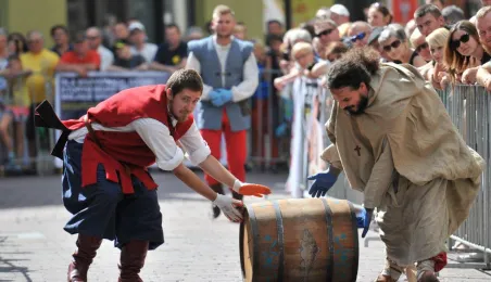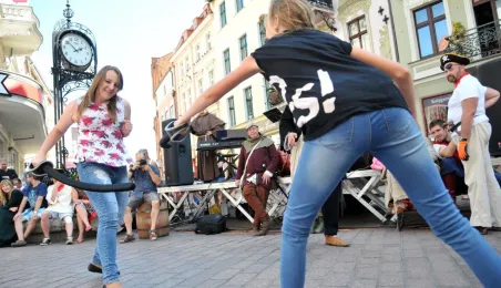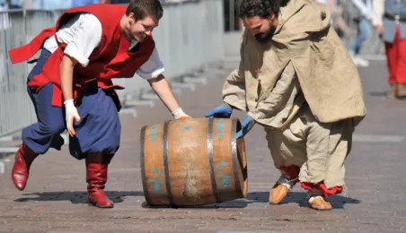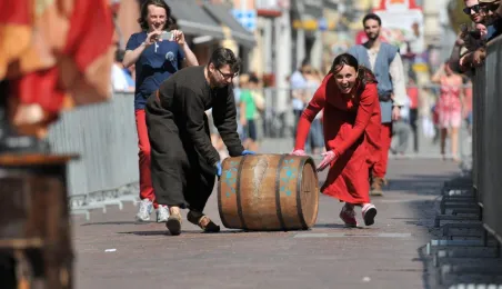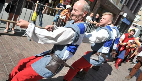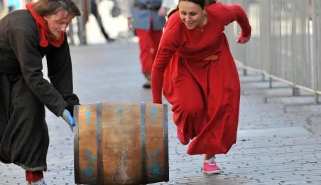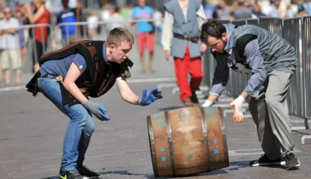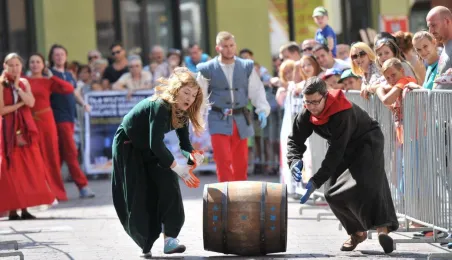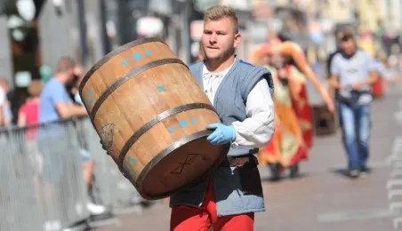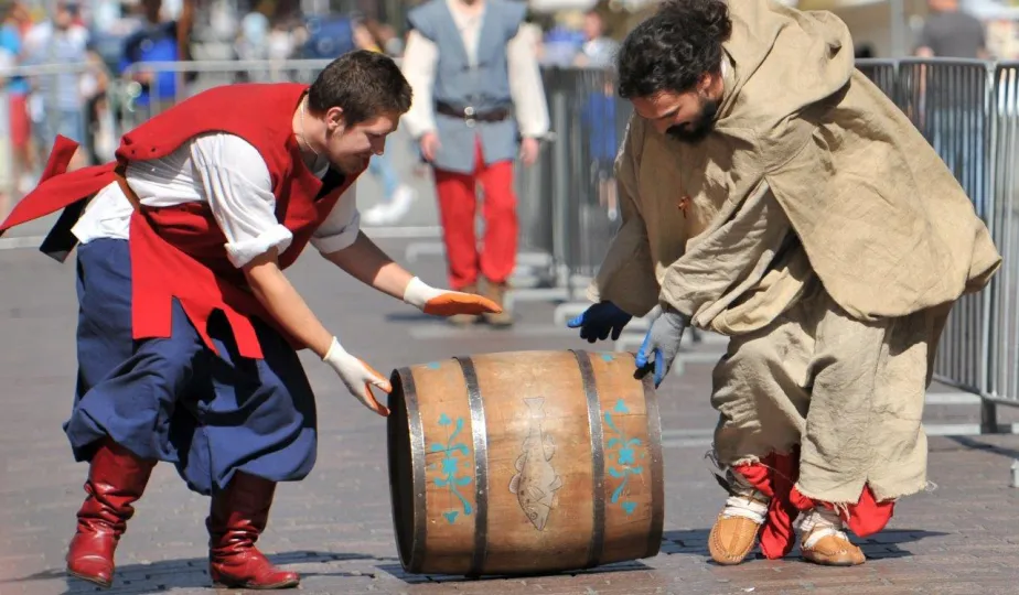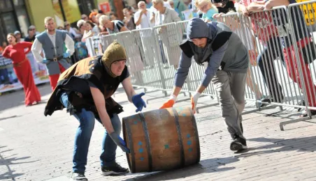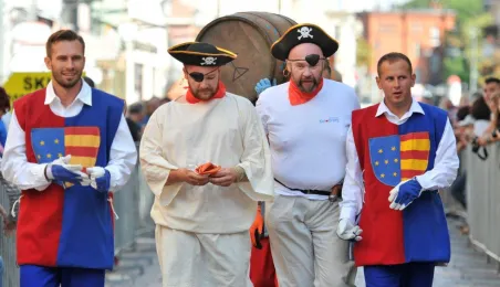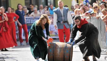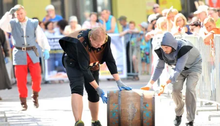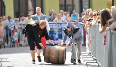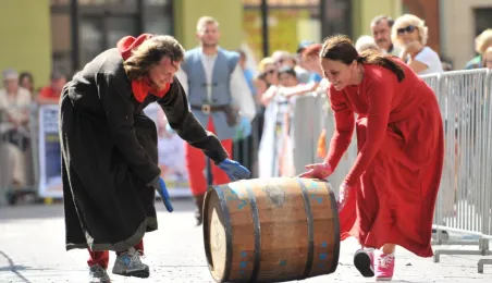 Już po raz siódmy w ostatnią sobotę wakacji, 29 sierpnia 2015 r. główny trakt handlowy toruńskiej starówki - ulice Szeroka i Królowej Jadwigi - obchodziły swoje święto. Główną atrakcją imprezy jest co roku Turniej Toczenia Beczek ze Śledziami, nawiązujący do nadanego Toruniowi w 1537 roku przez króla Zygmunta Starego przywileju składu śledzi i soli. Tegoroczny turniej wygrała drużyna Chełmna, która w nagrodę otrzymała Statuetkę Złotego Śledzia. Fot. Małgorzata Litwin