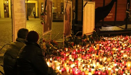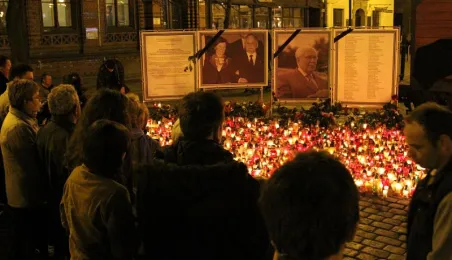 Toruń pogrążony w żałobie po tragicznej śmierci Prezydenta RP Lecha Kaczyńskiego, jego żony Marii Kaczyńskiej oraz członków delegacji na uroczystości w Katyniu, 10.04.2010 roku. Fot. Małgorzata Litwin.
