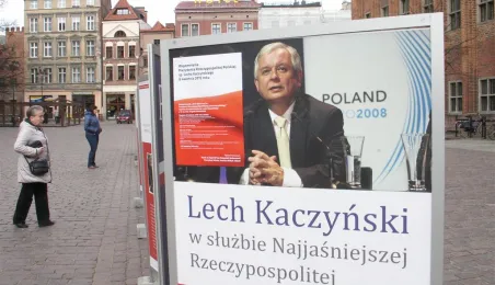 8 kwietnia 2015 r. w Toruniu odbyły się uroczystości pn. "Wspomnienie Prezydenta Rzeczypospolitej Polskiej śp. Lecha Kaczyńskiego". Zorganizowało je, przy wsparciu miasta, Stowarzyszenie „Ruch Społeczny im. Prezydenta Rzeczypospolitej Polskiej Lecha Kaczyńskiego”. Na program całodniowych obchodów złożyły się m.in. konferencja i projekcje filmów w Dworze Artusa, wystawa na Rynku Staromiejskim, złożenie kwiatów pod epitafium smoleńskim w kościele na Koniuchach oraz msza św. w intencji ofiar katastrofy, odprawiona w katedrze śś. Janów. Fot. Adam Zakrzewski