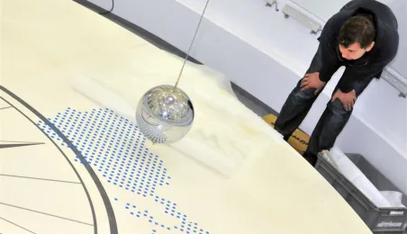 Wahadło Faucaulta - główna atrakcja powstającego Centrum Nowoczesności "Młyn Wiedzy", które zostanie otwarte w Toruniu pod koniec 2013 r. Zaprojektowane i zamontowane przez niemiecką firmę Hüttinger. Zdjęcia z 23 maja 2013 r. Fot. Małgorzata Litwin