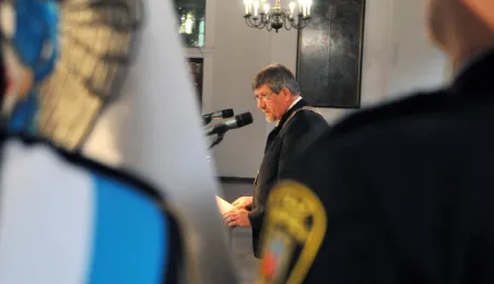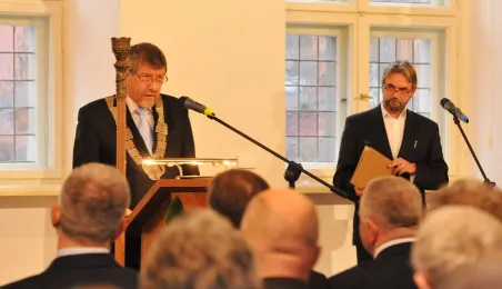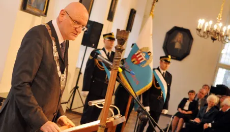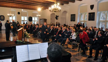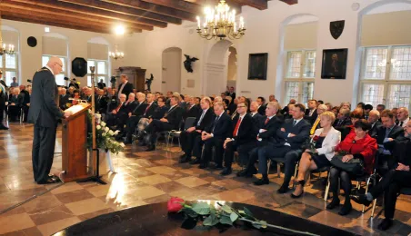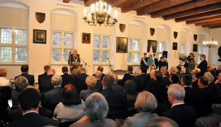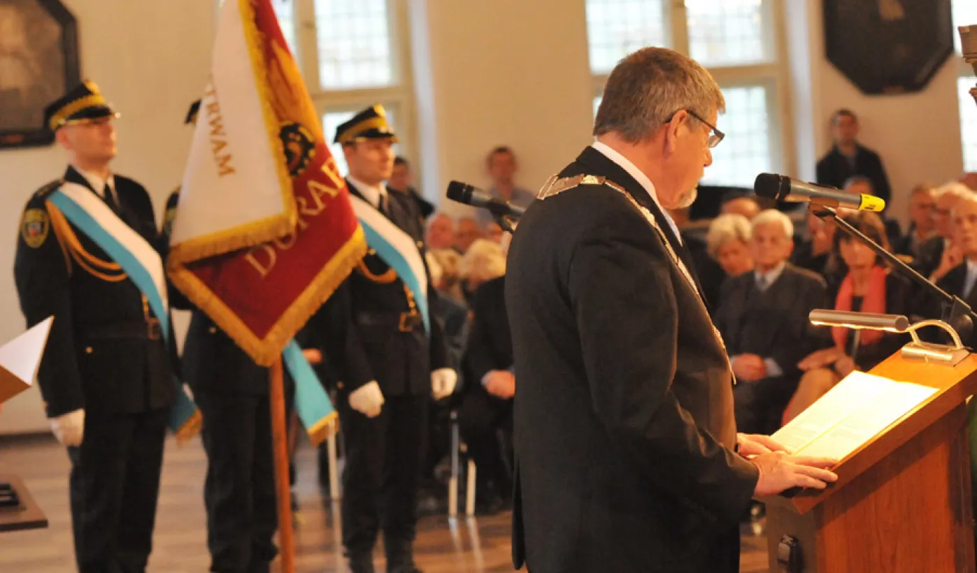 Ostatnia w mijającej kadencji, uroczysta sesja Rady Miasta Torunia odbyła się 13 listopada 2014 r. w Ratuszu Staromiejskim. Był to czas na podsumowanie minionych czterech lat toruńskiego samorządu. Podczas uroczystości wręczono także wyróżnienia. fot. Łukasz Klimkiewicz