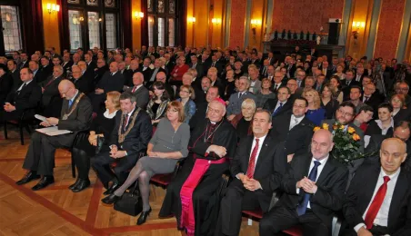 Na ostatniej w 2013 roku, 50. sesji Rady Miasta Torunia, zorganizowanej 30 grudnia w uroczystej oprawie Dworu Artusa, zostały wręczone nagrody i wyróżnienia osobom zasłużonym dla Torunia. Astronom dr hab. Antoni Stawikowski, twórca toruńskich struktur „Solidarności”, otrzymał Honorowe Obywatelstwo Miasta Torunia, proboszcz parafii katedralnej ks. prałat Marek Rumiński - medal "Za Zasługi dla Miasta Torunia" na wstędze za dziesięcioletni wkład w renowację katedry śś. Janów i promocję Torunia, a odchodzący na emeryturę dyrektor Miejskiego Zarządu Dróg Andrzej Glonek - medal prezydenta "Thorunium" za zasługi dla budowy toruńskiego mostu i inwestycji drogowych. Zdjęcia: Małgorzata Litwin