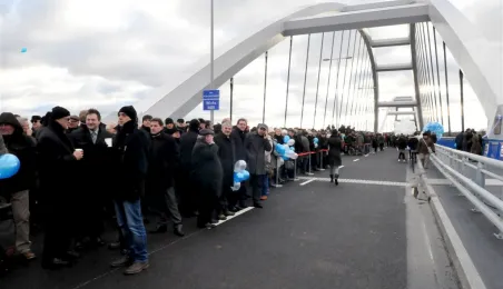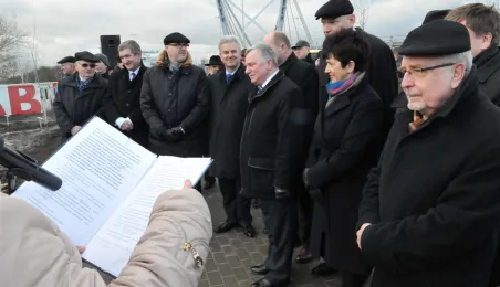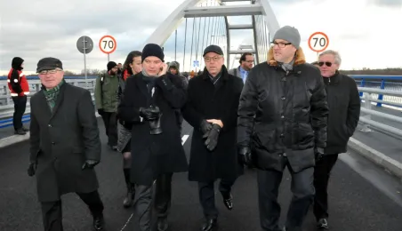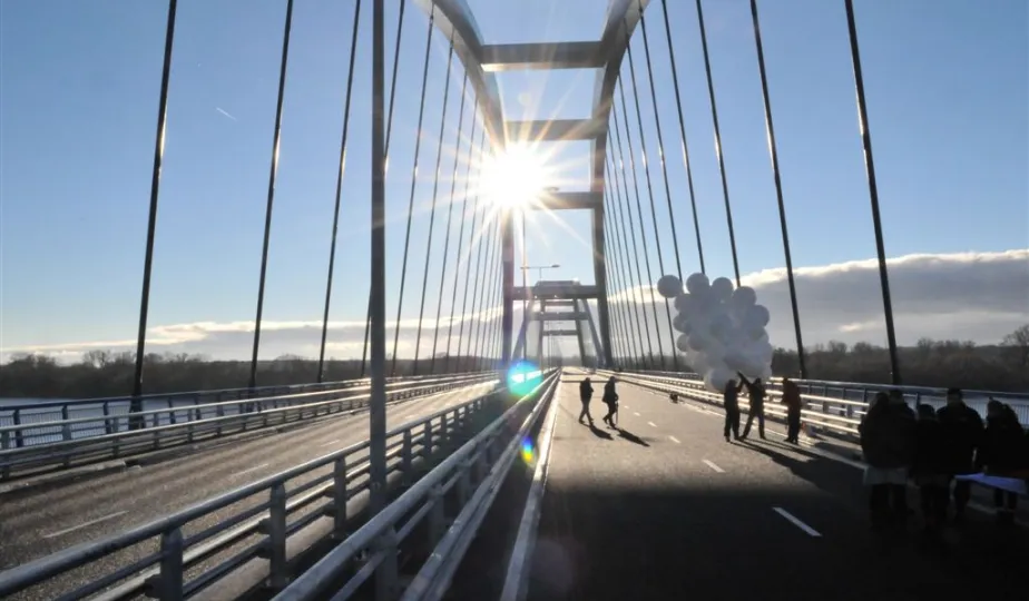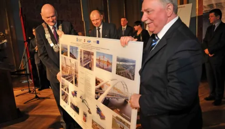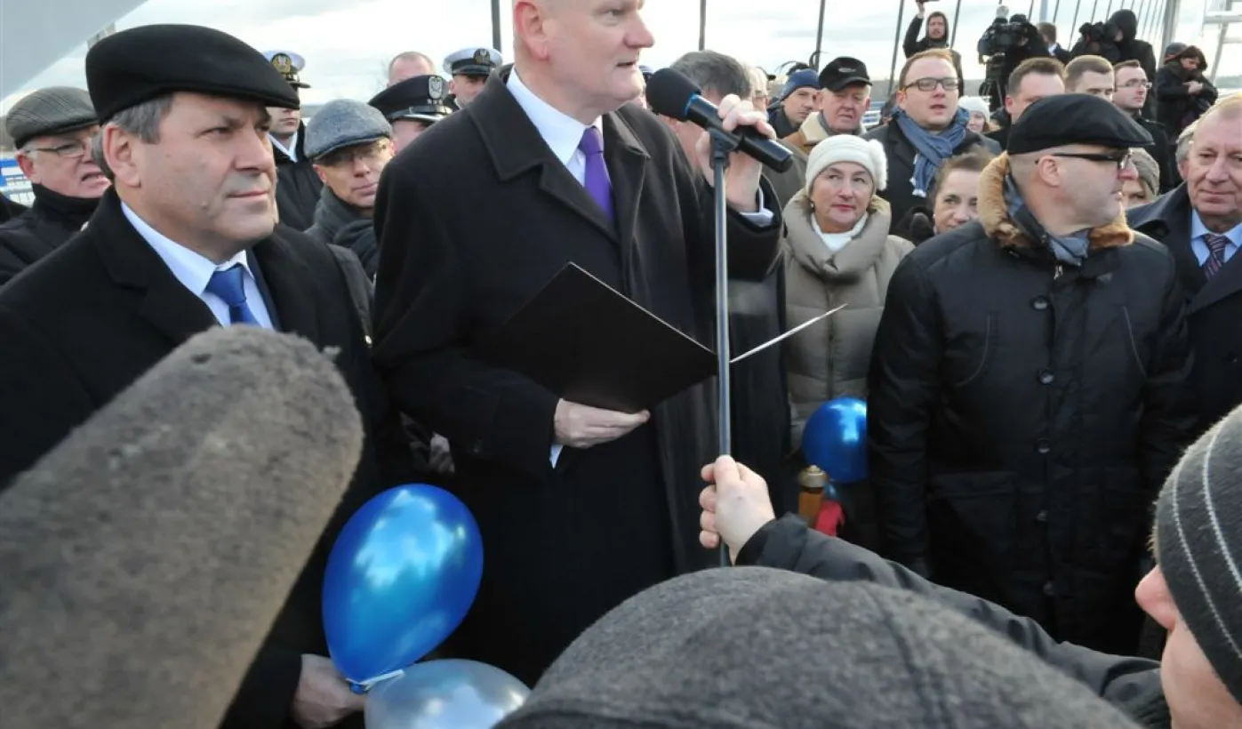 9 grudnia 2013 r. około godziny 14.00 pierwsze samochody przejechały po nowym moście drogowym w Toruniu. Oddanie przeprawy do użytku poprzedziła uroczystość odsłonięcia tablicy z imieniem patronki mostu gen. Elżbiety Zawackiej i zasadzenie na placu Daszyńskiego 16 dębów upamiętniających budowniczych mostu. Podczas uroczystej gali W Dworze Artusa wręczono medale, wyróżnienia i certyfikaty osobom zasłużonym dla inwestycji, na którą Toruń czekał od wielu dziesięcioleci. Zdjęcia: Małgorzata Litwin