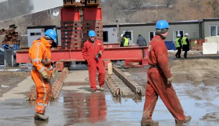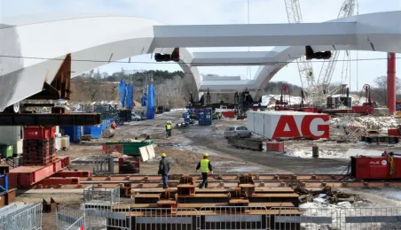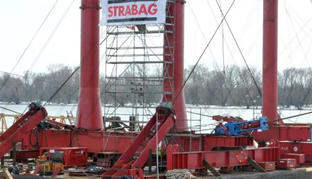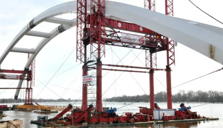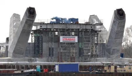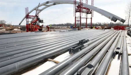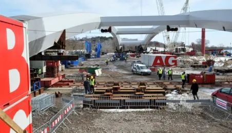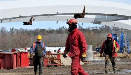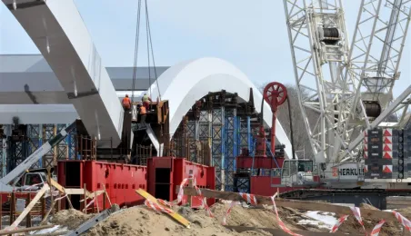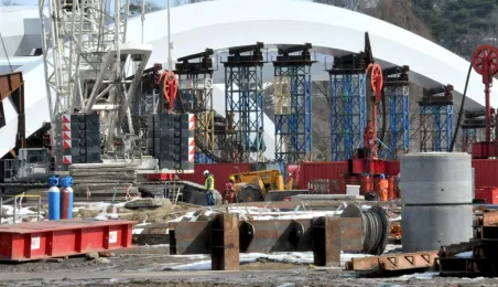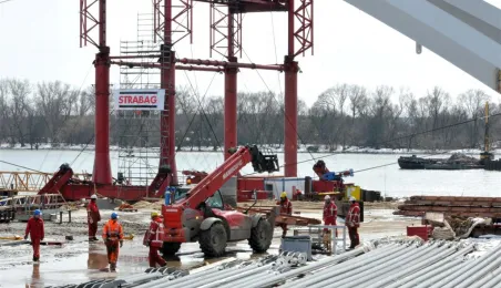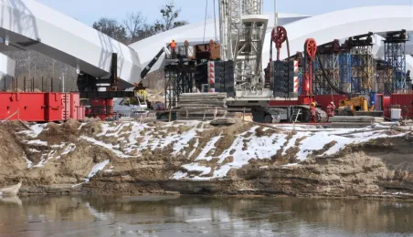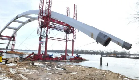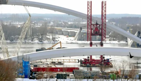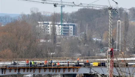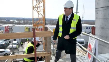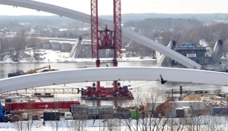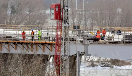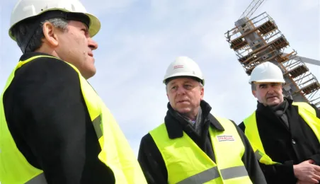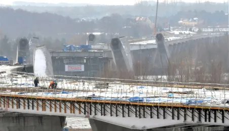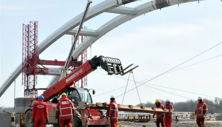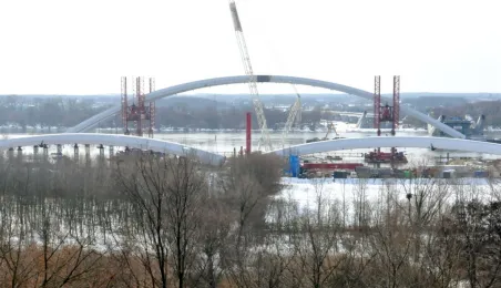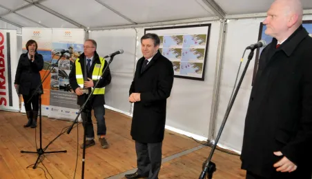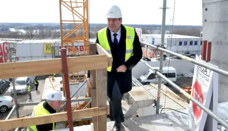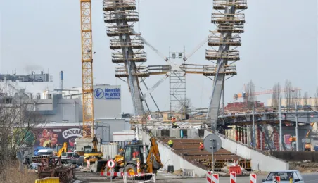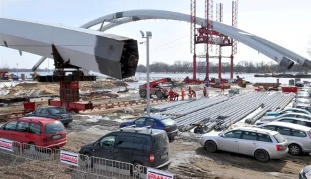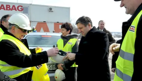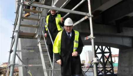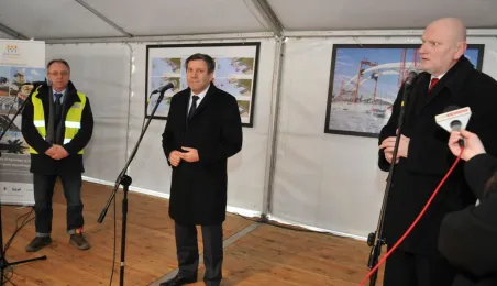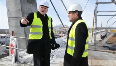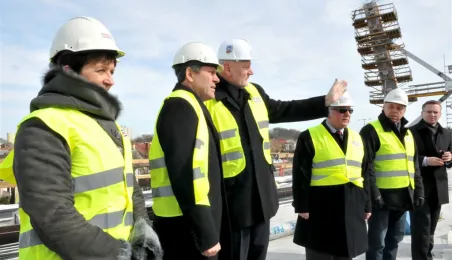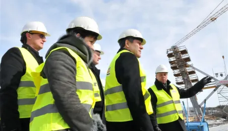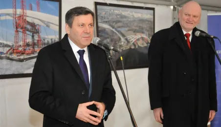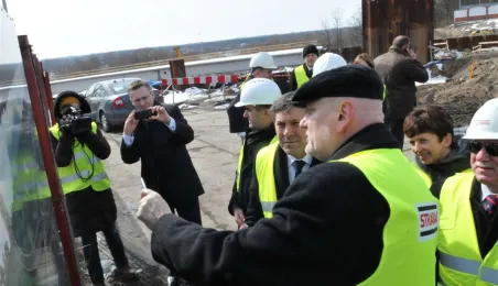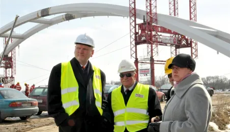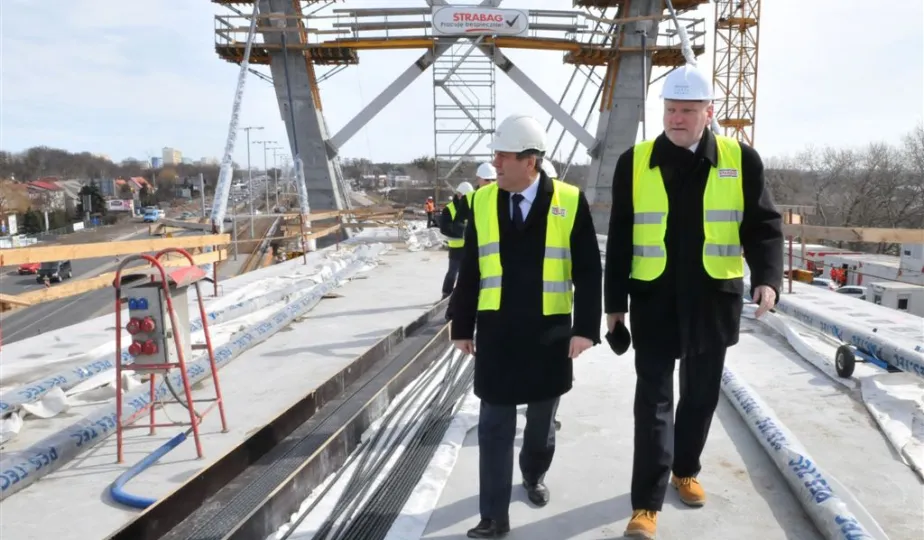 27 marca 2013 r. budowę toruńskiego mostu przez Wisłę zwizytował Wicepremier i Minister Gospodarki Janusz Piechociński. Fot.: Małgorzata Litwin.