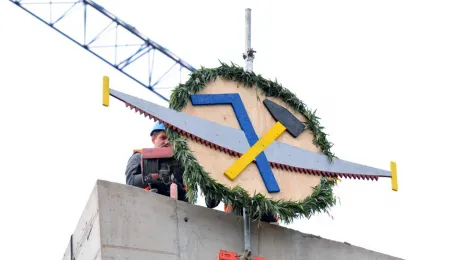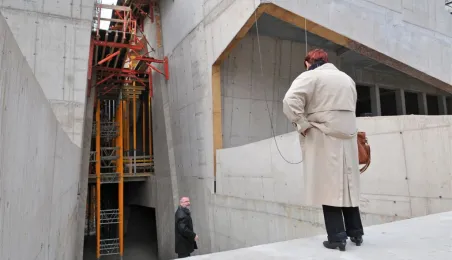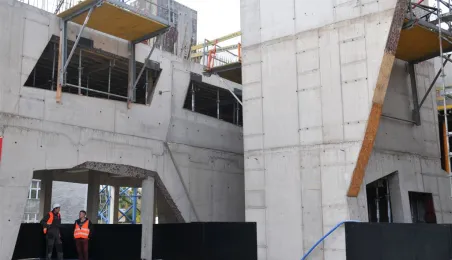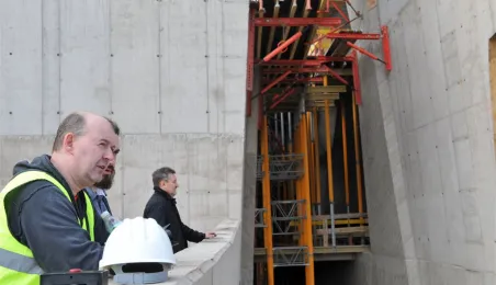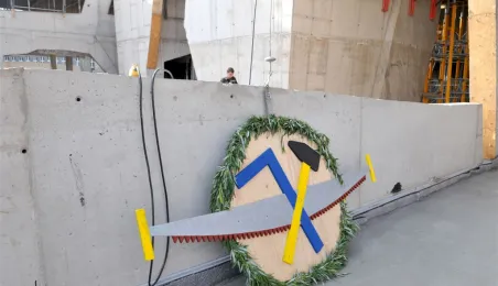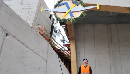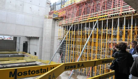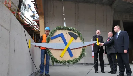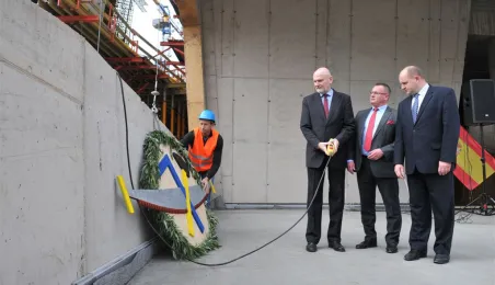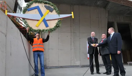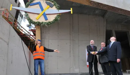 15 października 2014 r. na budowie sali koncetowej na toruńskich Jordankach zawisła wiecha. Oznacza to, że budowlańcy dotarli z robotami do najwyższego punktu budynku. Zakończenie inwestycji jest planowane latem 2015 r., a oddanie do użytku - w IV kwartale 2015 r. Koszt budowy wyniesie ok. 188 mln zł netto, w tym 55 mln zł to dotacja unijna. Podczas uroczystości zawieszenia wiechy na obiekcie goście zwiedzili salę prób, w której krótki koncert dali kwartet Toruńskiej Orkiestry Symfonicznej i Sławek Wierzcholski z Nocną Zmianą Bluesa. Fot. Małgorzata Litwin