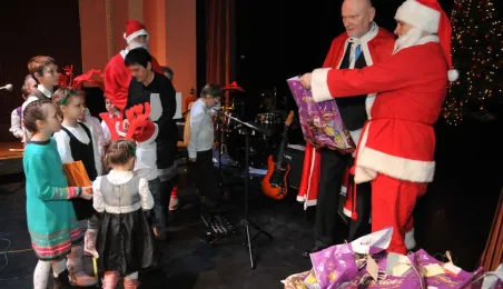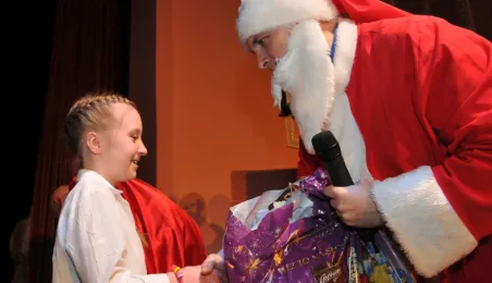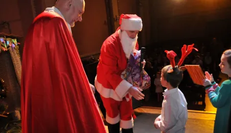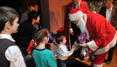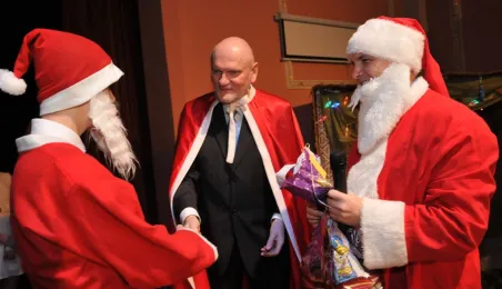 Tradycyjnie przed Wigilią prezydent Torunia Michał Zaleski spotkał się z dziećmi z miejskich domów dziecka. Były kolędy, przedstawienie jasełkowe oraz paczki od św. Mikołaja. Spotkanie odbyło się 20 grudnia 2013 r. w Młodzieżowym Domu Kultury przy ul. Przedzamcze. Zdjęcia: Małgorzata Litwin