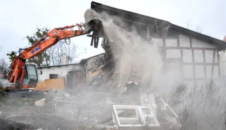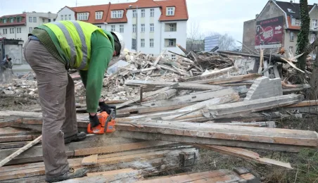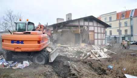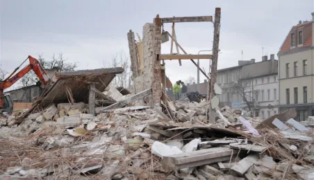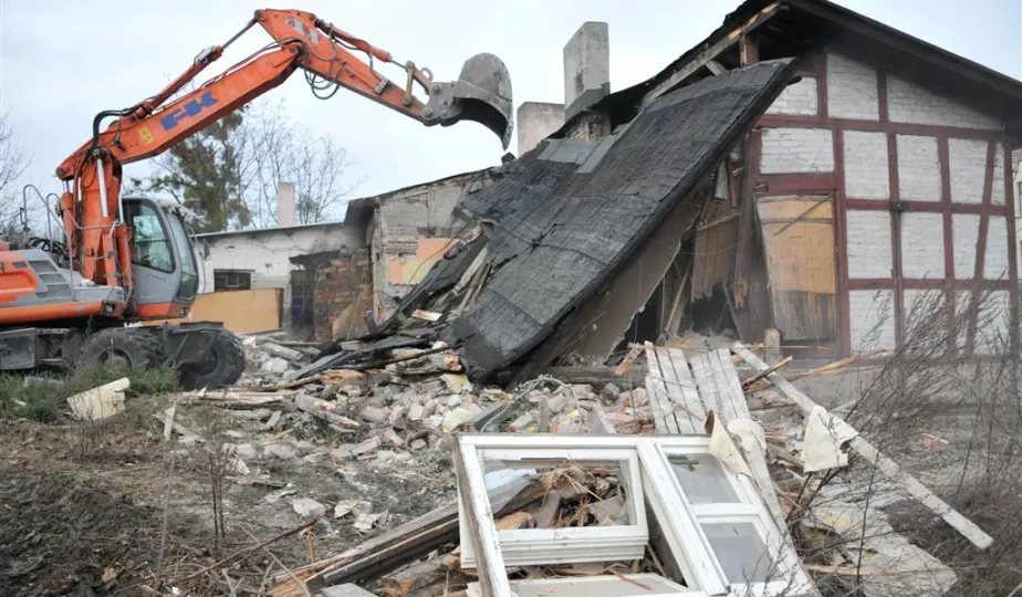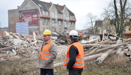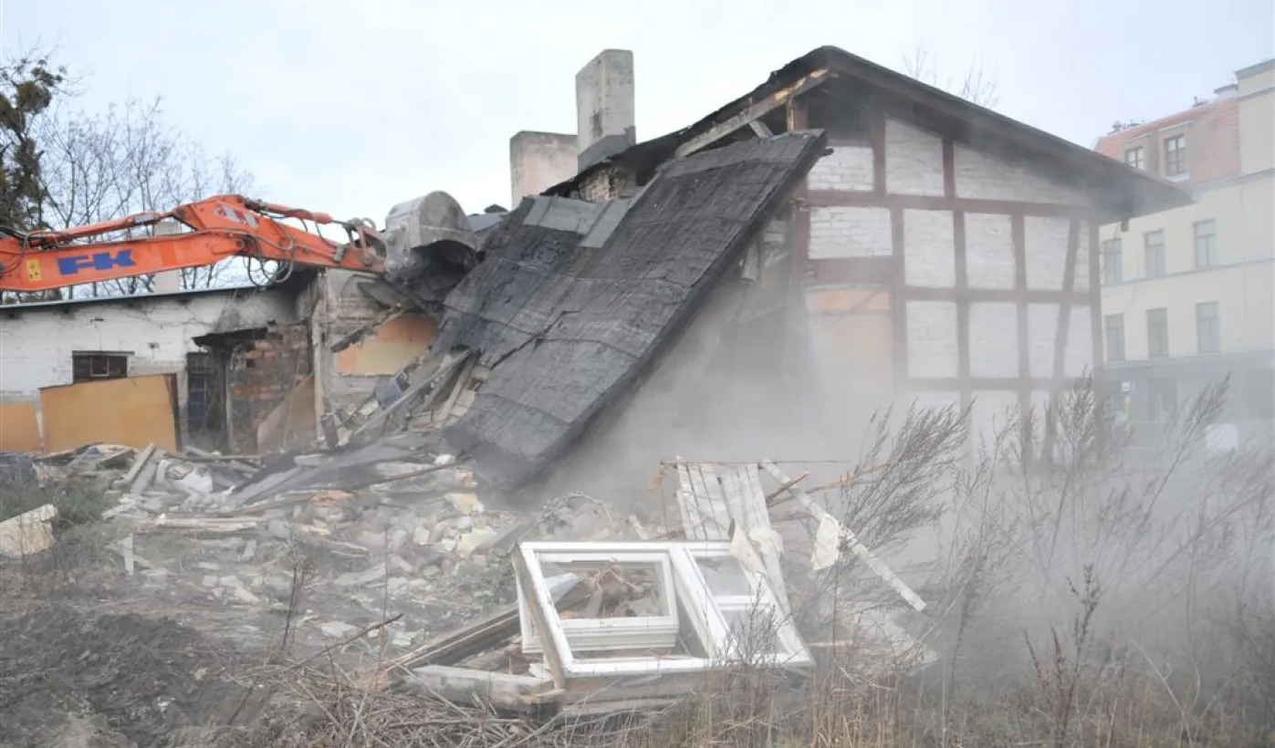 Ruszyły wyburzenia budynków z pruskiego muru przy Szosie Chełmińskiej, związane z planowaną przebudową 400-metrowego odcinka tej ulicy i skrzyżowania z ul. Bema. Prace prowadzi Przedsiębiorstwo Budowy Dróg i Mostów Kobylarnia. W miejscu wyburzonych domów powstanie druga jezdnia. Zdjęcia z 13 stycznia 2015 r. Fot. Małgorzata Litwin