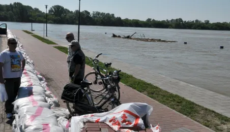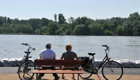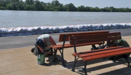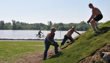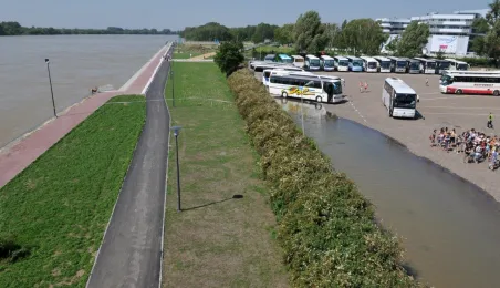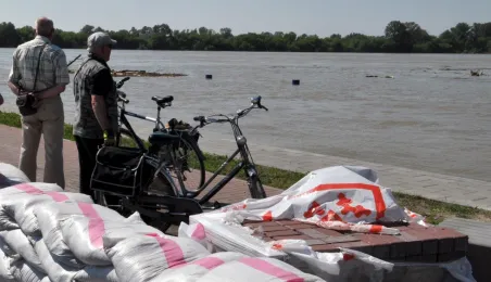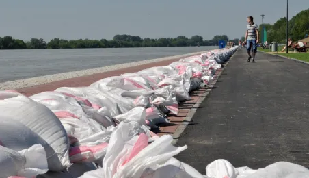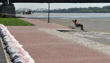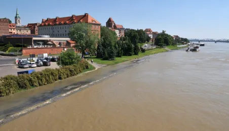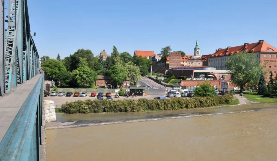 Stan Wisły w Toruniu osiągnął 23 maja 2014 r. o godz. 10.00 poziom 697 cm. Woda podmyła Bulwar Filadelfijski między mostem drogowym a kolejowym, nie dotarła jednak do poziomu ulicy. W ciągu następnych godzin stan rzeki ma się stabilizować i poziom wody będzie wahał się w okolicach 700 cm. Fot. Magdalena Kujawa