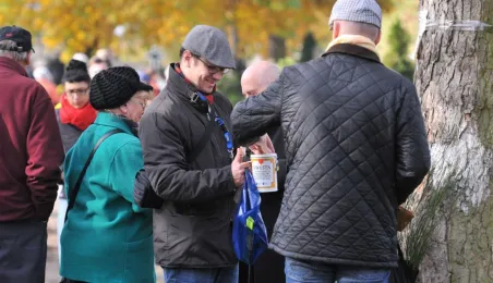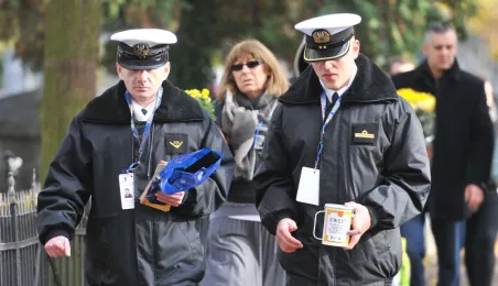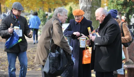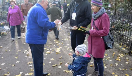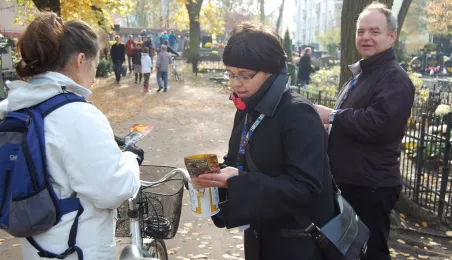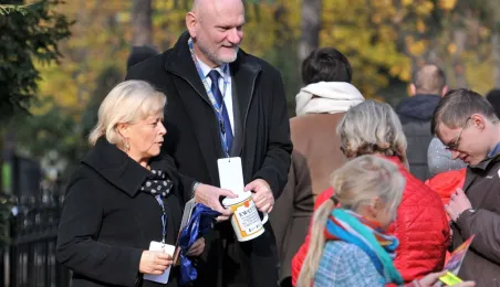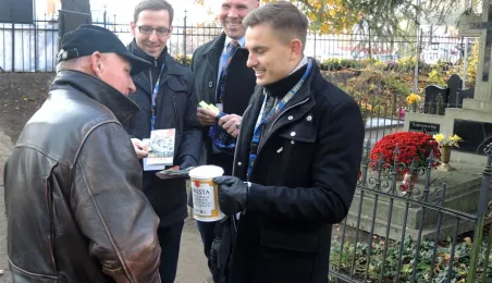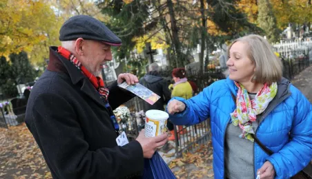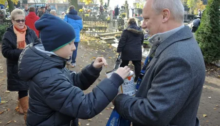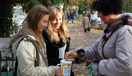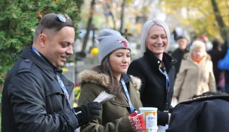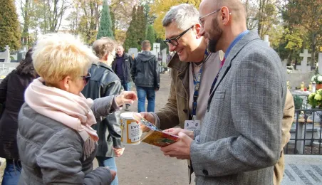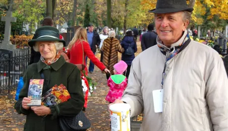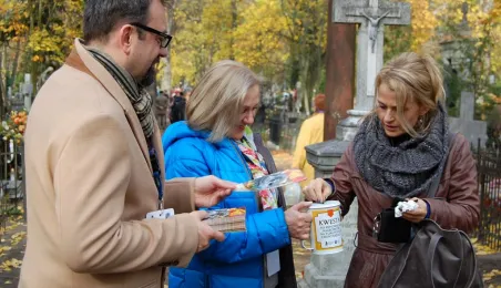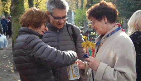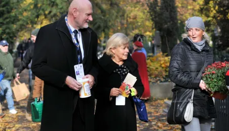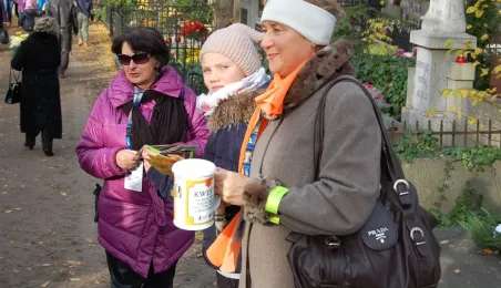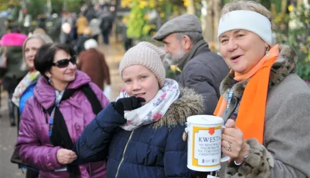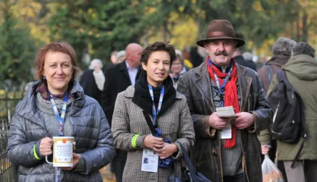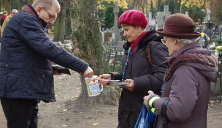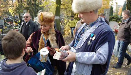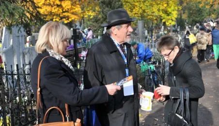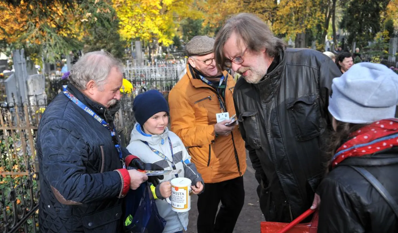 Ponad 15 tys. wrzucili do puszek torunianie i goście miasta 1 listopada 2015 r. podczas trzynastej kwesty na cmentarzu św. Jerzego, organizowanej od 2003 r. przez Urząd Miasta Torunia i Towarzystwo Miłośników Torunia. Zgromadzone fundusze są przeznaczane na ratowanie zabytkowych nagrobków na najstarszej toruńskiej nekropolii. W ubiegłym roku odrestaurowany został nagrobek filologa klasycznego prof. Stefana Srebrnego i jego żony Małgorzaty. W tym roku celem była odnowa pomnika Adolfa Legiejko, prawnika i działacza niepodległościowego. Fot. Małgorzata Litwin, Magdalena Kujawa i Filip Tomasik