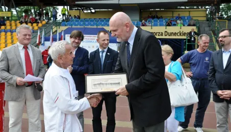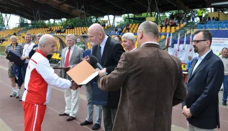 Blisko 400 zawodników wystartowało 27 czerwca 2015 r. w jubileuszowych, XXV Mistrzostwach Polski Weteranów Lekkiej Atletyki w Toruniu. Impreza odbyła się na Stadionie Miejskim im. Grzegorza Duneckiego. W zawodach wzieły udział m.in. trzy uczestniczki igrzysk olimpijskich – Ludwika Chewińska, Genowefa Patla i Urszula Kielan, a także 105-letni Stanisław Kowalski ze Świdnicy, który pobił aż dwa należące do siebie rekordy. W pchnięciu kulą uzyskał rezultat 4,27 metra. Z kolei dysk posłał na odległość 7 metrów i 50 centymetrów. Fot. Lech Kamiński