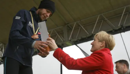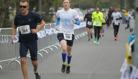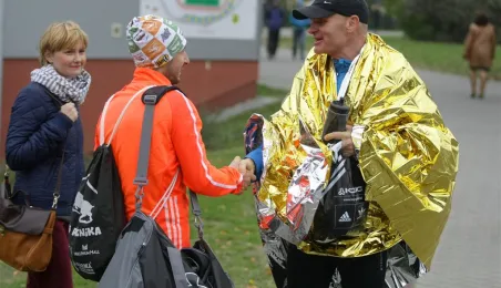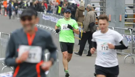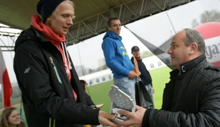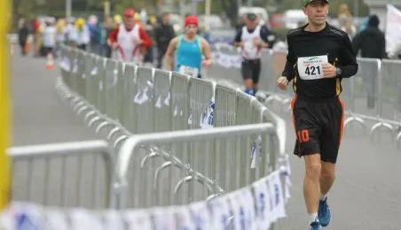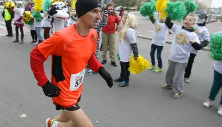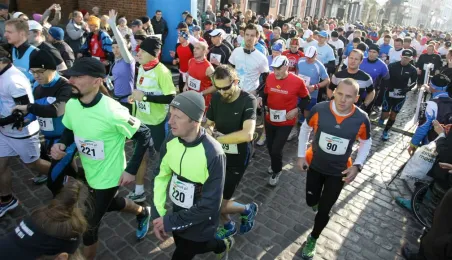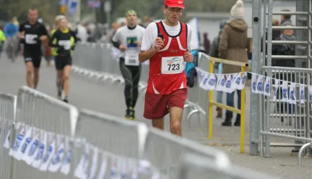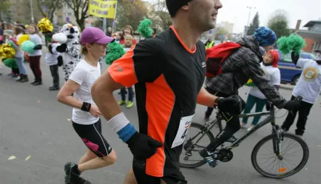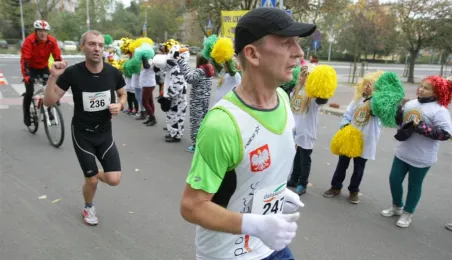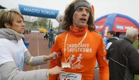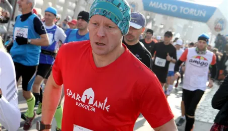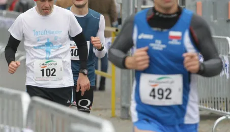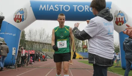 Z wynikiem 2 h 20 min 12 s Marcin Błaziński z Lublińca wygrał XXXII Maraton Toruński, rozegrany 26 października 2014 r. na 42,195 km trasie Toruń - Łubianka - Toruń. Drugi na mecie był Łukasz Oskierko z Warszawy. Najlepszy z torunian Kamil Nartowski zajął piąte miejsce, a ósmy był Maciej Drożdżal. Wśród kobiet najlepsza była Agnieszka Kuzyk z Raciszyna (2:13,19), a czwarta zameldowała się na mecie reprezentująca Toruńskie Opatrunki Anna Arseniuk z Górska/Złejwsi z czasem 2:19,56. Fot. Adam Zakrzewski