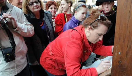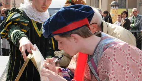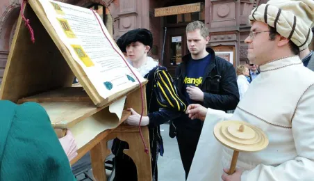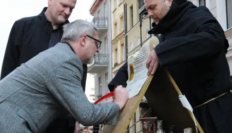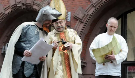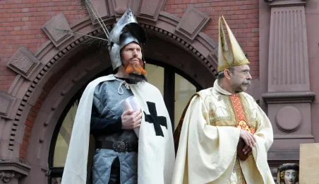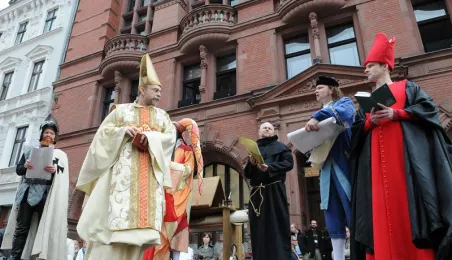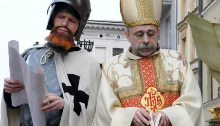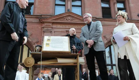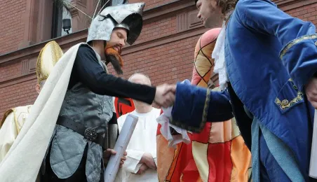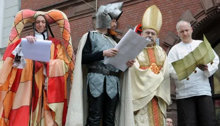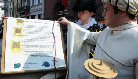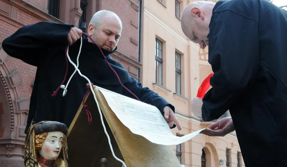 "Z przeszłości w przyszłość 1411-2011-2411" - impreza plenerowa, inscenizacja podpisania I Pokoju Toruńskiego. Toruń, 17 kwietnia 2011. Fot. Małgorzata Litwin.