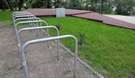 Na obu brzegach Wisły w Toruniu, na wysokości Bramy Mostowej, dobiegają końca inwestycje projektu Zielony Pomost: budowa infrastruktury turystycznej - tarasów widokowych, miejsc na odpoczynek, placu zabaw, tablic informacyjnych, iluminacji świetlnej oraz systemu informatycznego z trójwymiarową realistyczną mapą, prezentującą toruńskie zabytki w Zespole Staromiejskim i walory przyrodnicze rezerwatu Kępy Bazarowej. Całkowita wartość projektu to ponad 2,9 mln zł, w tym dofinansowanie z Europejskiego Funduszu Rozwoju Regionalnego 1,17 mln zł. Zdjęcia z 12 sierpnia 2013 r.