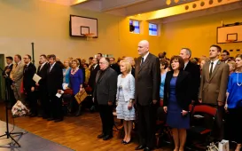 80 lat temu powstała pierwsza szkoła na Bydgoskim Przedmieściu w Toruniu. Uroczystości z tej okazji odbyły się 24 kwietnia 2015 r. w Szkole Podstawowej nr 13 przy ul. Krasińskiego. W uroczystym apelu wzięli udział przestawiciele toruńskiego samorządu: prezydent Torunia Michał Zaleski i radni Rady Miasta Torunia. Z okazji jubileuszu miasto ufundowało szkole sztandar. Fot. Lech KamińskiGala otwarcia III Festiwalu Sztuki Faktu