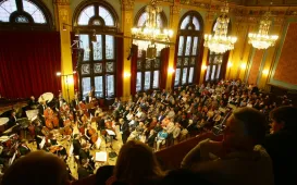 1 maja 2015 r. w Toruniu rozpoczął się XXII Festiwal Muzyki i Sztuki Krajów Bałtyckich. Na inaugurację w Dworze Artusa wystąpiła Orkiestra Symfoniczna Filharmonii Lwowskiej pod dyrekcją Volodymyra Syvokhipa. Solistą koncertu był młody wirtuoz skrzypiec Aleksander Bożyk, zwany Paganinim z Ukrainy, laureat konkursu „Ukraina ma talent”. Fot. Adam Zakrzewski