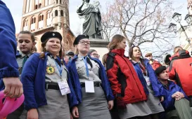 Uroczysty apel na Rynku Staromiejskim w Toruniu zakończył w niedzielę, 8 marca 2015 roku 32. edycję Ogólnopolskiego Rajdu Kopernikańskiego. W imprezie wzięło udział 88 patroli harcerskich z całego regionu . Przez trzy dni rywalizowali oni ze sobą na 5 trasach: zuchowej, harcerskiej, starszoharcerskiej, wędrowniczej i instruktorskiej. Zadania, które mieli do zrealizowania, były związane z historią Torunia i postacią patrona rajdu – Mikołaja Kopernika. Fot. Lech KamińskiNagrodzeni za prace o Toruniu