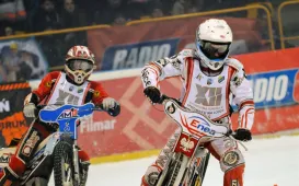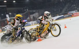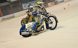 Artur Czaja najlepszy w XII Mistrzostwach Torunia w Speedwayu na Lodzie, rozegranych 25 stycznia 2015 r. w Toruniu. D rugie i trzecie miejsce zajęli znakomicie prezentujący się w turnieju Niemcy Ronny Weis i Richard Geyer. Z awody przyciągnęły na Tor-Tor blisko 3 tys. osób. Fot. Lech KamińskiMuzeum Toruńskiego Piernika