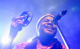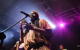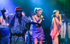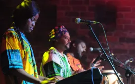 Jambo Africa to zespół 7 muzyków pochodzących z kilku krajów afrykańskich działa w Polsce od 14 lat. Jest pierwszą utworzoną w naszym kraju formacją złożoną wyłącznie z czarnych muzyków. 23 sierpnia 2014 r. zagrali w ruinach zamku krzyżackiego. fot. Łukasz Klimkiewicz