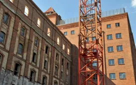 W Toruniu trwa adaptacja zabytkowych młynów przy ul. Kościuszki na Centrum Nowoczesności Młyn Wiedzy, inkubator przedsiębiorczości i międzynarodowe centrum spotkań młodzieży. Inwestycja jest współfinansowana z funduszy unijnych. Pierwsza z placówek - interaktywne muzeum nauki z ogromnym wahadłem Foucaulta, przebiegającym przez wszystkie kondygnacje, zostanie otwarta pod koniec 2013 r. Zdjęcia z maja 2013 r. Fot. Małgorzata LitwinUlica Bema po przebudowie