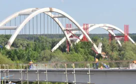 Ulica Bema w Toruniu po zakończonej 21 maja 2013 r. przebudowie. Prace ruszyły wiosną 2012 r. Na prawie kilometrowym odcinku od placu Alfonsa Hoffmanna do Szosy Chełmińskiej jednojezdniowa ulica została przebudowana do układu dwujezdniowego, po dwa pasy ruchu w każdym kierunku. Powstały też dodatkowe lewo- i prawoskręty, chodniki i ścieżki rowerowe, a także sygnalizacja świetlna. Ulica zapewni obsługę komunikacyjną powstającej hali widowiskowo-sportowej.Montaż drugiego łuku mostu, popołudnie