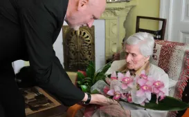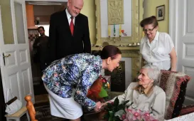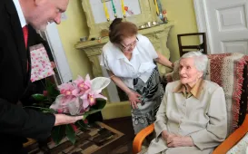 Pani Helena Klaman z ul. Rabiańskiej skończyła 18 maja 2013 roku 104 lata. Jubilatkę odwiedzili z gratulacjami prezydent Torunia Michał Zaleski i szefowa USC Katarzyna Pułkownik. Fot. Małgorzata LitwinCentrum Nowoczesności w w dawnych młynach