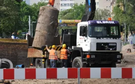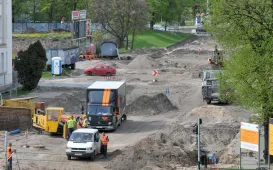 Budowa nowych i modernizacja istniejących platform tramwajowych w Toruniu z udziałem funduszy unijnych (do 2015 r. w sumie 76). Zdjęcia z maja 2013 r., fot. Agata KomanPrzebudowa alei Solidarności