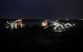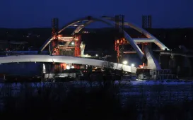 Montaż pierwszego łuku, nocą