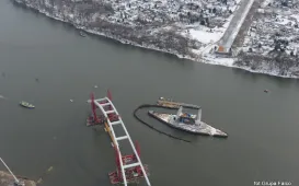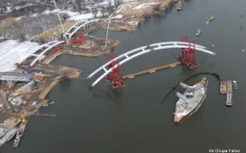 Transport łuku na podpory, z lotu ptaka