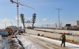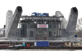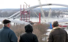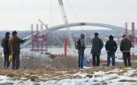 Na budowie toruńskiego mostu. Połowa marca 2013