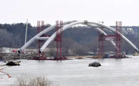 Wicepremier Janusz Piechociński na budowie toruńskiego mostu