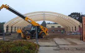 Fotografie z koncertu Toruńskiej Orkiestry Symfonicznej i Polskiej Filharmonii Kameralnej Sopot - pod batutą Adama Sztaby - z okazji 111. rocznicy nadania Sopotowi praw miejskich. W ramach obchodów Prezydenci Torunia i Sopotu podpisali list intencyjny o współpracy obu miast. Muzyczne wydarzenie, stanowiące oprawę sopockiego jubileuszu i jednocześnie zaczątek przyszłej współpracy tego miasta z Toruniem, odbyło się 30 października 2012 roku na sopockiej Ergo Arenie. Fot.: FOTOBANK.PL/UMS.Hala tenisowa w budowie