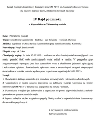 Udział w rajdzie jest bezpłatny, dla uczestników w każdym wieku, obowiązują zapisy do 15 lutego 2023 r. na adres komisja.mlodziezowa@gmail.com .
