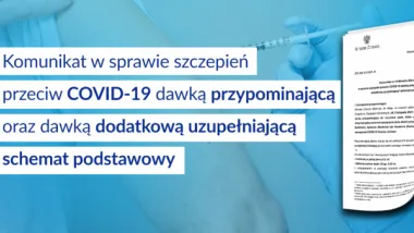 Poniżej publikujemy komunikat Ministra Zdrowia w sprawie szczepień przeciw COVID-19 dawką dodatkową (stosowaną po pełnym schemacie szczepienia).