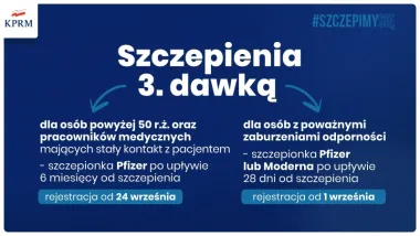 Rząd wspólnie z Radą Medyczną rozszerza listę osób mogących dodatkowo wzmocnić swoją odporność przeciw COVID-19. Od 24 września wszystkie osoby, które ukończyły 50 lat oraz pracownicy medyczni mający stały kontakt z pacjentem będą mogli otrzymać przypominającą szczepionkę firmy Pfizer. -