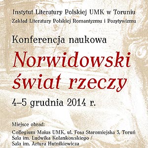 Instytut Literatury Polskiej UMK w Toruniu i Zakład Literatury Polskiej Romantyzmu i Pozytywizmu zapraszają na konferencję naukową "Norwidowski świat rzeczy"